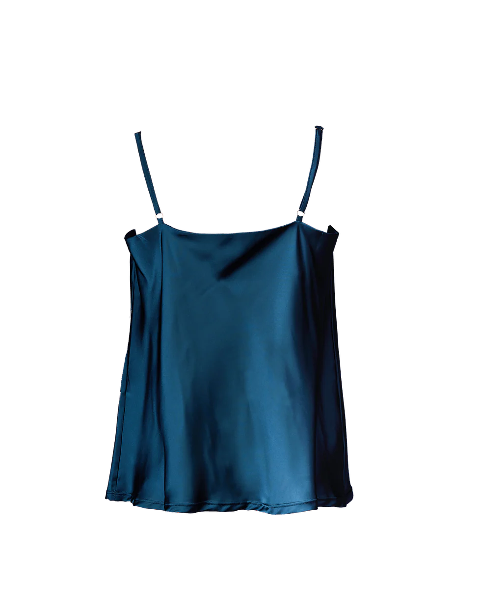 Top Luna în nuanța Petrol aduce o mișcare fluidă ținutelor de zi cu zi. Un amestec cu aspect de mătase alunecă delicat pe piele, iar aspectul lui simplu, natural , pune in atentie decolteul fara ajutorul unei dantele. Bretelele reglabile permit ajustarea potrivirii, de la discret la statement. Poate fi purtată în straturi peste sutienul Luna Triangle Bralette sau băgată în pantaloni ori fuste elegante – o piesă versatilă care te însoțește cu ușurință de la zi la seară.