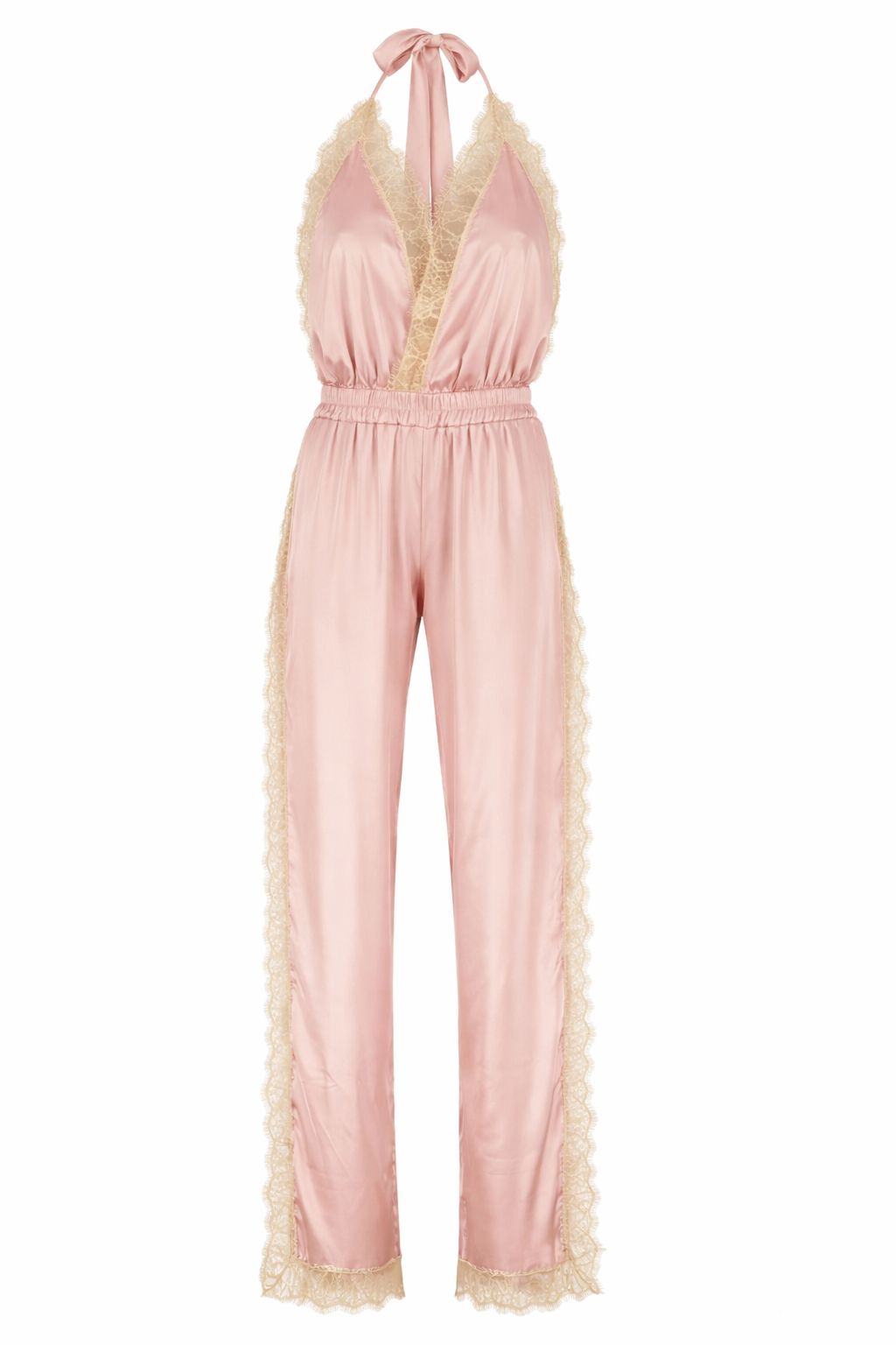 Salopeta lungă Luna în nuanța Roz Pal redefinește loungewear-ul: o piesă din satin tăiat pe bie, care curge asemenea unui lichid și pune în valoare fiecare curbă. Prinderea halter reglabilă, cupele drapate și finisajele delicate din dantelă reciclată o fac la fel de potrivită ca pijama cu aspect de mătase sau ca ținută stilizată cu ușurință pentru seară.